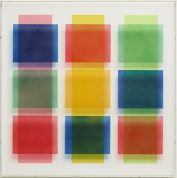 Auch wenn sich die unterschiedlichen Werkgruppen der Künstlerin klar voneinander abgrenzen, gibt es doch hinsichtlich ihrer Beschäftigung mit dem Thema Raum wie auch mit Blick auf das von ihr bevorzugte Material Acrylglas eine große Konstanz. Letzteres verwendet sie seit vielen Jahren vor allem für einsehbare, farbig gestaltete Wandkästen, die zu ihrem Markenzeichen geworden sind. Zudem basiert ihr Schaffen durchweg auf gleichbleibenden Gestaltungsprinzipien: Die Beschränkung auf elementare Formen und Strukturen wie Kreis, Rechteck, Balken oder Linie zählt ebenso dazu wie das raumbildende Spiel mit Transparenz, Farbe, Licht und Schatten.