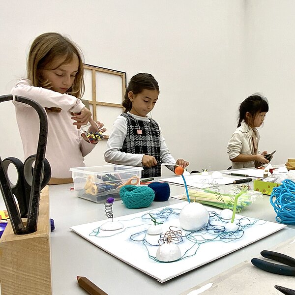 Inspiriert von einem Rundgang durch die Ausstellungen, gestalten Kinder ab 7 Jahren eigene kleine Kunstwerke.