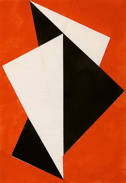 Durchdringung zweier Quadrate stellt die Frage nach Positiv und Negativ in einer klaren, symmetrischen Komposition. Glöckners Faltung Dreieckige Erhebungen auf Rot lässt sich hingegen durch die Bemalung in Schwarz und Weiß auf ein interessantes Wechselspiel zwischen Außen und Innen ein, das einer jeden Faltung inhärent ist. (Susann Scholl)
