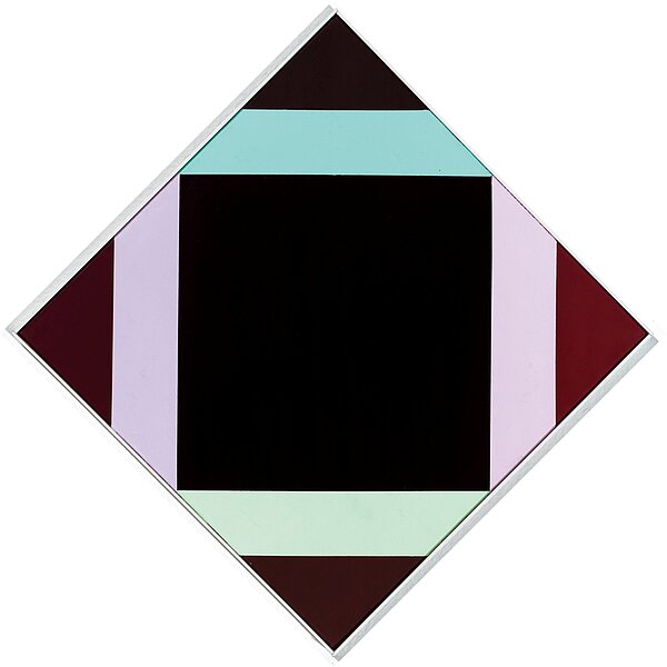 Die beiden Ölgemälde aus der Sammlung Marli Hoppe-Ritter gehören zu einer 1964 begonnenen Serie des Künstlers, die ausschließlich übereck stehende Bilder umfasst. Beide Arbeiten bestechen durch eine sorgfältig durchdachte kompositorische und farbliche Ausgewogenheit. Der Aufbau der von Max Bill als „spitze Bilder“ bezeichneten Werke entwickelt sich in der Regel aus der Grundform eines Quadrats. Dies ist auch bei diesen beiden Gemälden der Fall. Sie zeigen im Bildzentrum jeweils ein Quadrat, das dem gleichseitigen rautenförmigen Bildträger exakt eingepasst ist. In ihrer strengen Statuarik bildet die zentrale Quadratform ein ausgleichendes Gegengewicht zum ungewöhnlichen Format der Leinwand.