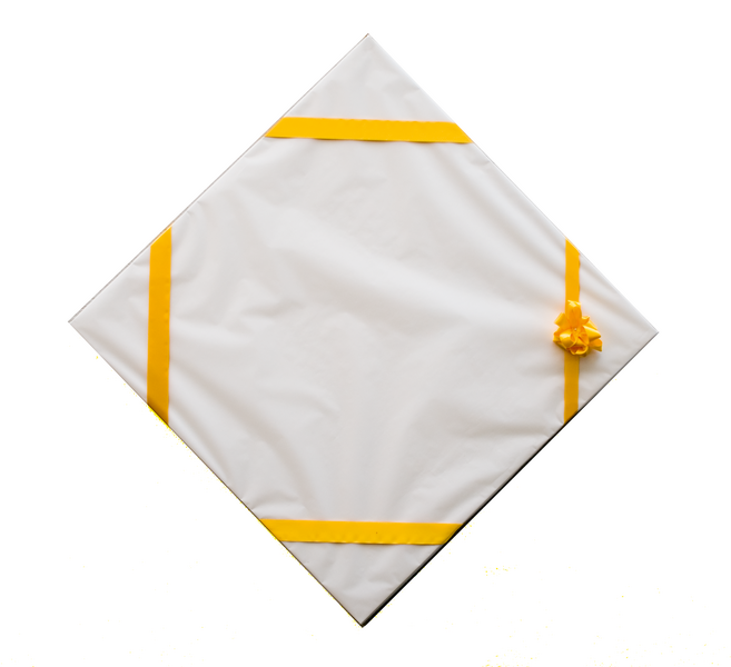 A person is only truly a person when at play, as Friedrich Schiller observed over 200 years ago. The Italian artist Corrado Bonomi is one such gifted player – or so the playground of his art suggests. He plays with objects and artefacts found in the world around him, with the seamless borders between model and reality, with profane and sacred icons. He has had himself photographed as a conjuror with a glowing sphere, and then as a gardener, angler and pizza chef. With blithe seriousness Corrado Bonomi sounds out the boundaries between art and kitsch. And always by means of role games in which the protagonists of art inevitably get involved: on the one side the artist as he is expected to be, on the other the expectations of the art audience and at centre stage the artwork. A work like “Ein unmögliches Geschenk” [An Impossible Gift] must be seen in this light. It is a square picture, balanced on its tip, packed and adorned by a yellow bow like a present. The picture as such remains hidden inside – or is the packed picture the actual work?