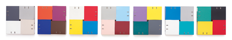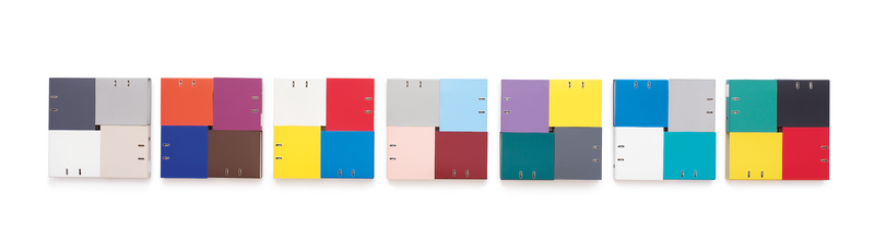 This work underlines one of the central concerns in Beat Zoderer’s work: he approaches already extant images on the formal level, while finding a material alternative that enables him to develop something completely new from the given theme. Here the cardboard covers of the document files assume the function of colour surfaces. And with the arrangements he uses, the artist harks back to the systems and principles that informed concrete art. In fact that most elementary form of concrete art, the square, is realized twice over here. It appears as the outline of the document files when they are arranged together, and also as the empty space at the centre of the four surfaces. This approach is similar to that of Richard Paul Lohse, who often developed his systematic pictures from the square as his basic module. Similarly, in Zoderer’s work the structure is determined by the size of the individual elements, which in this case comply with industrial standards: A4. He describes them as a “module of the office”, as a way of ordering everyday life, as it were, whose function is redefined in the system called art. The title Departement I–VII alludes to the Ministries in Switzerland and also to the seven days of the week, so that in contrast to the professed self-referentiality of the Zurich Concretists, Zoderer creates a link to the physical context on the content level. In this way, the work straddles the cross-currents of abstraction and realism. (Susann Scholl)